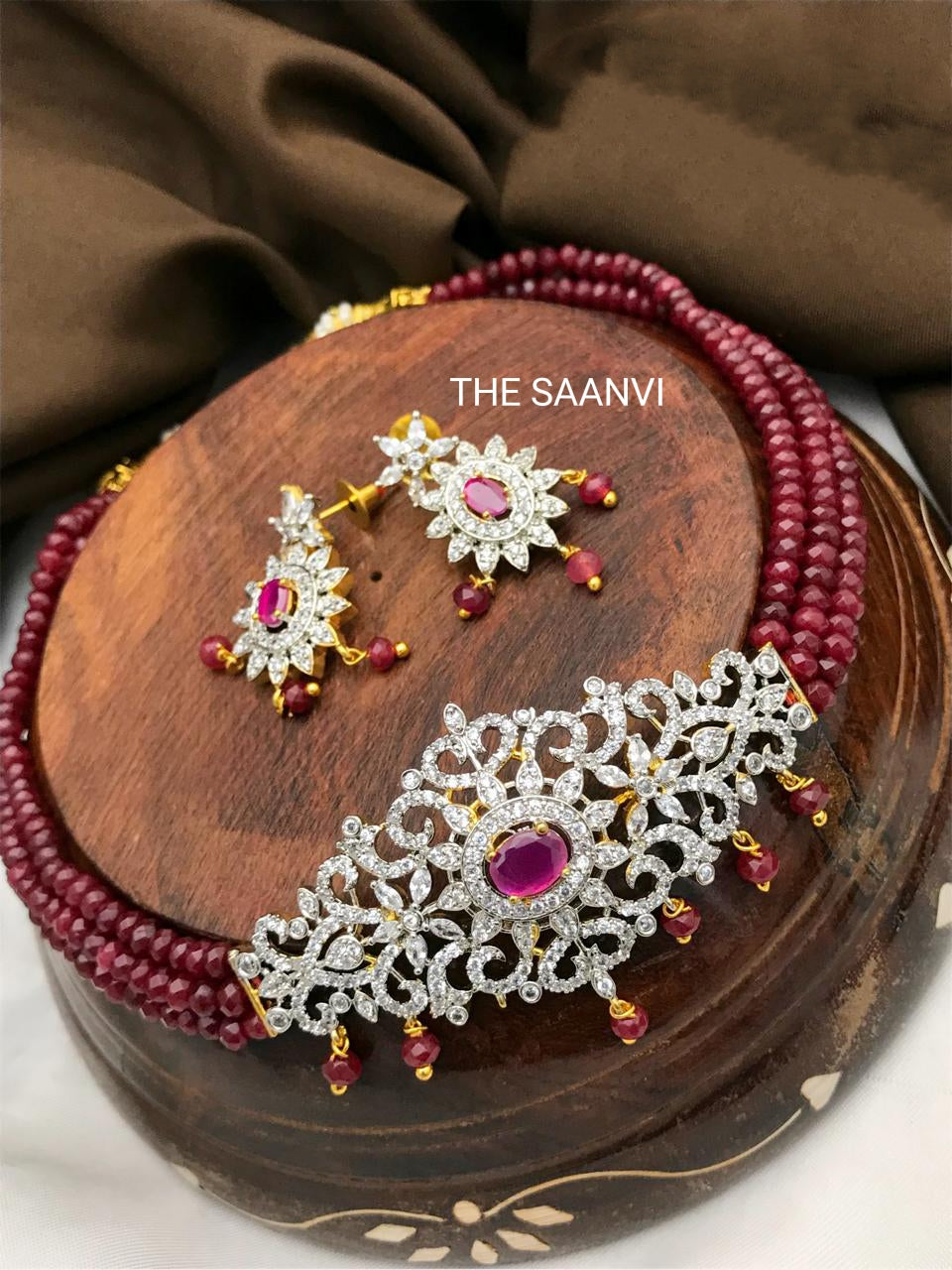 BEADED AMERICAN DIAMOND STONE CHOKER SET