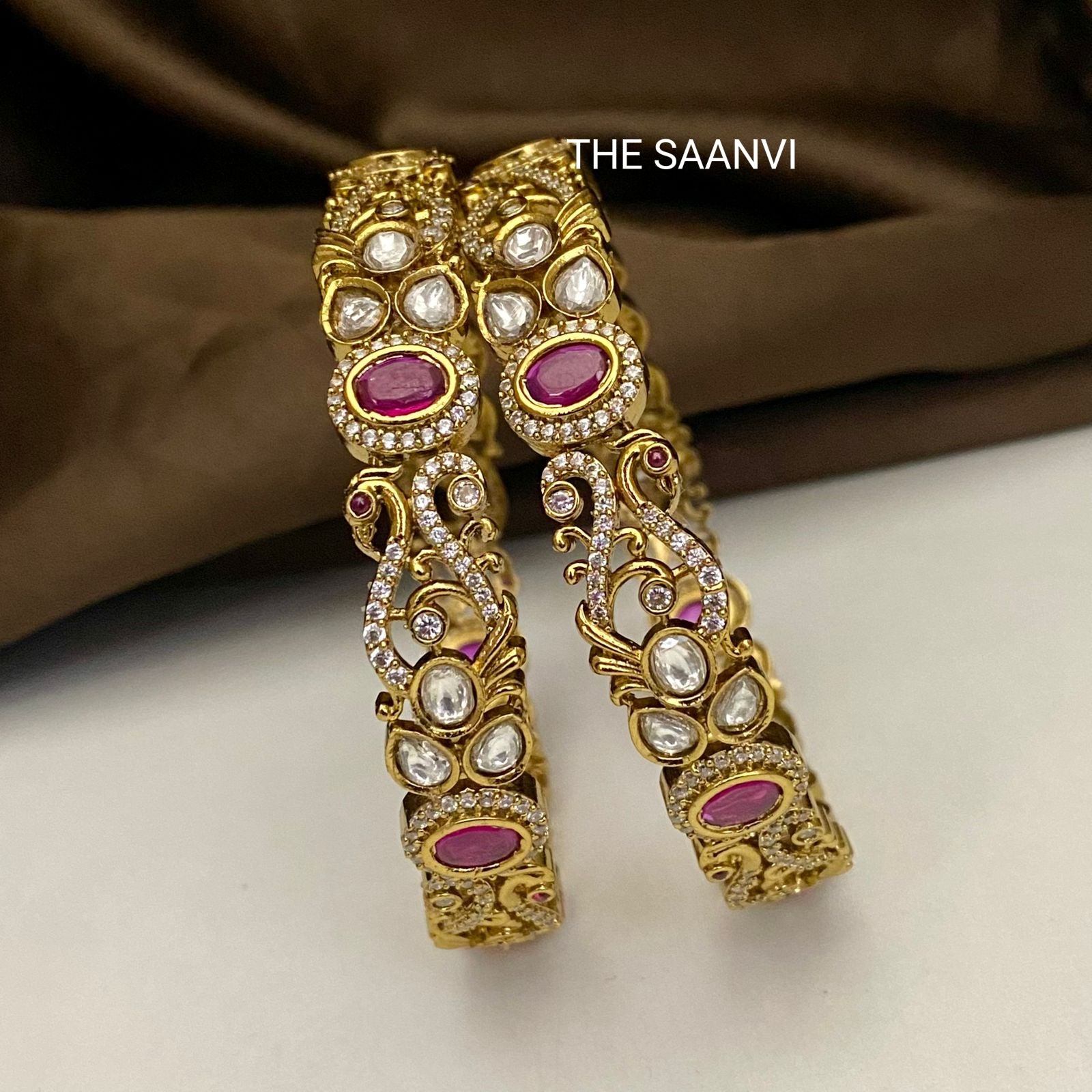 KUNDAN WHITE AND RED STONE BANGLE SET