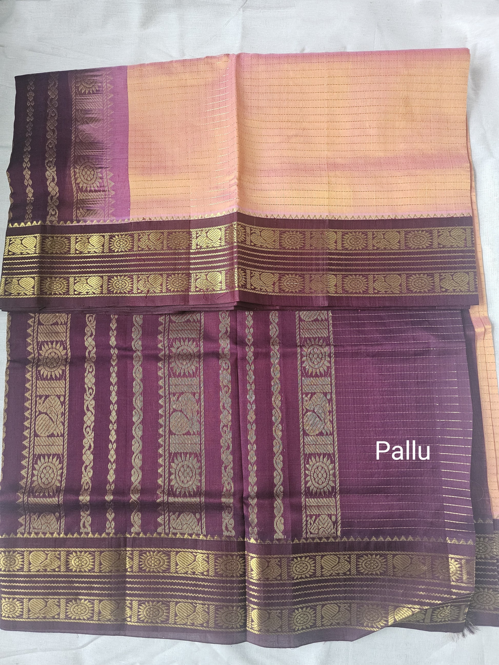PEACH & PLUM PURE SILK COTTON KOARVAI SAREE