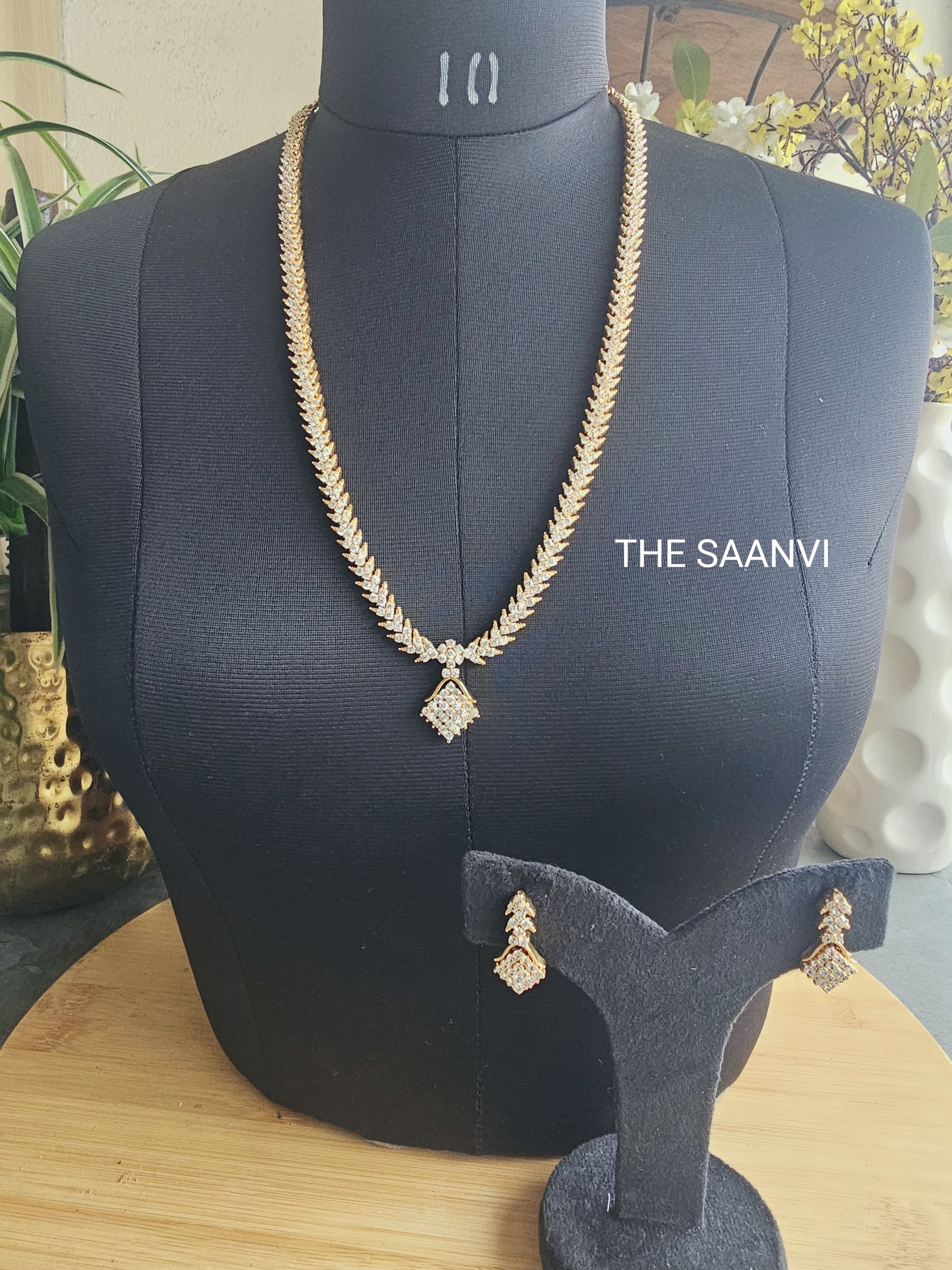 PREMIUM AMERICAN DIAMOND STONE LONG NECKPIECE SET ( WITH BACKCHAIN)