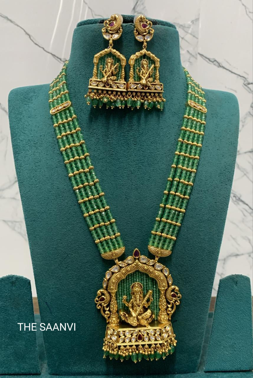 PREMIUM GAJA ANTIQUE BEADED HARAM SET WITH KUNDAN STONES