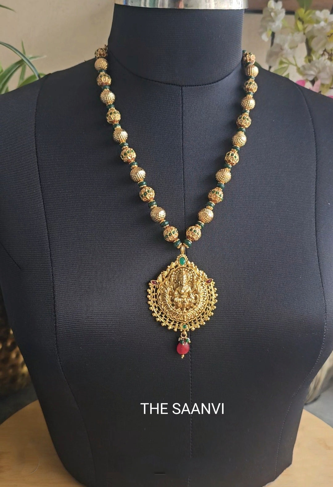 SILVER REPLICA LAKSHMI PENDANT BALL CHAIN ( WITHOUT EARRINGS)