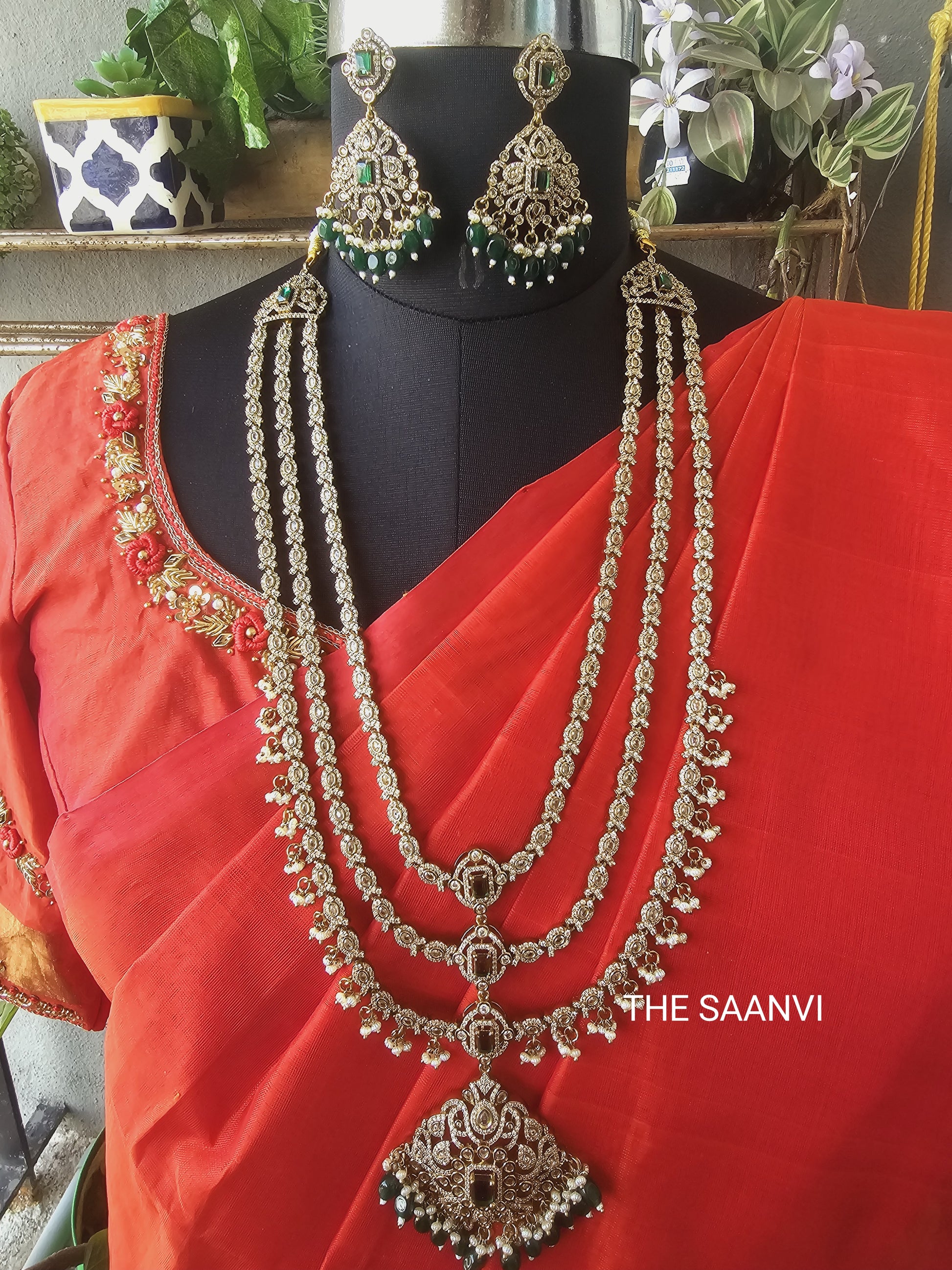 TAARA VICTORIAN DIAMOND GREEN BEADED HARAM SET